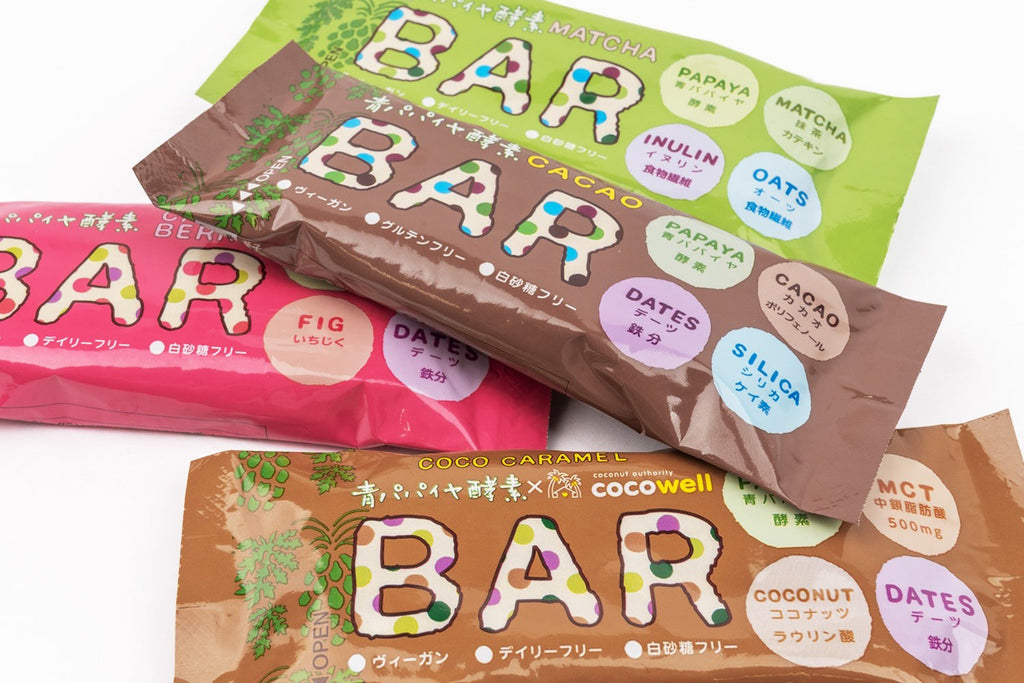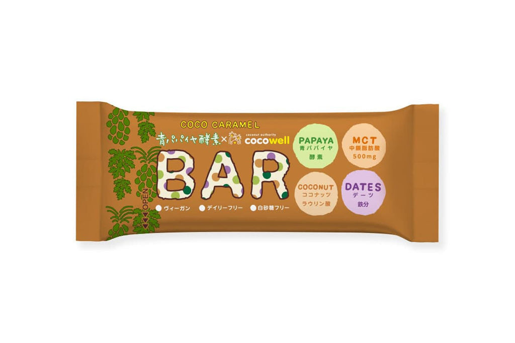 ココナッツ専門ブランド「cocowell」との共同開発。高品質なココナッツ素材をふんだんに使用し、非加熱・自然製法で抽出したMCTオイルを採用。ナチュラルでミルキーな味わいとともに、青パパイヤ酵素やMCT、食物繊維など、素材の良さをそのまま楽しめるバーです。